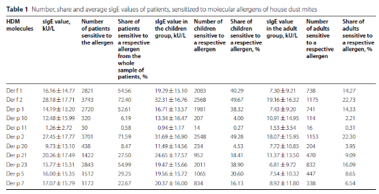 Conclusion: The results obtained indicate the importance of determining the sensitization profile using the multicomponent approach. A more detailed study of the optimal age for AIT prescription is required as the pattern of sensitization to HDMs is formed during the first year of life.